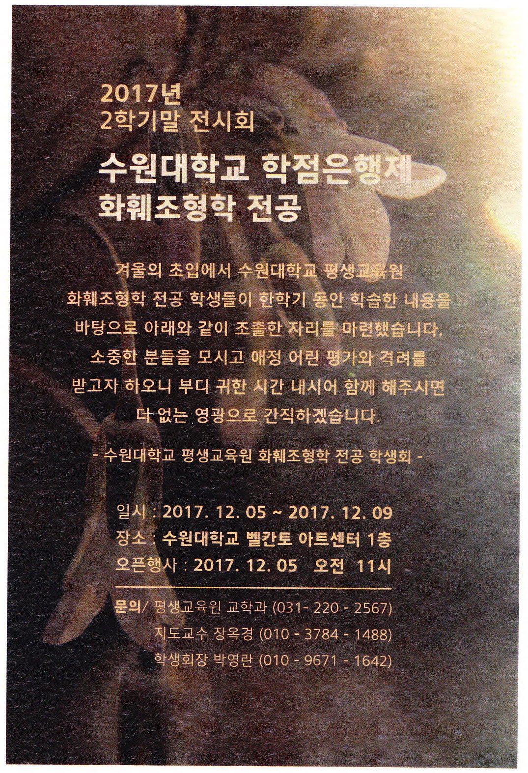 б ȭ л б н Ʒ ڸ ߽ϴ. е ð ݷ ް Ͽ ε ð þ Բ ֽø ϰڽϴ. *Ͻ : 2017. 12. 05(ȭ) ~ 2017. 12. 09() *: б ĭ Ʈ 1 * : 2017. 12. 05(ȭ) 11